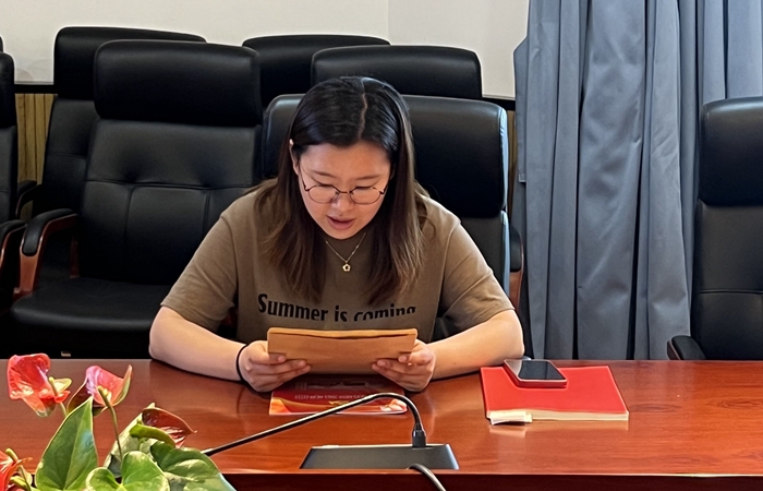 会议第二项,按校党委要求,将《学习习近平新时代中国特色社会主义思想专题摘篇》纳入主题教育学习计划,宣传委员江芸利用安徽先锋公众号线上诵读模块,带领大家学习习近平新时代中国特色社会主义思想的核心要义、精神实质、丰富内涵和实践要求。