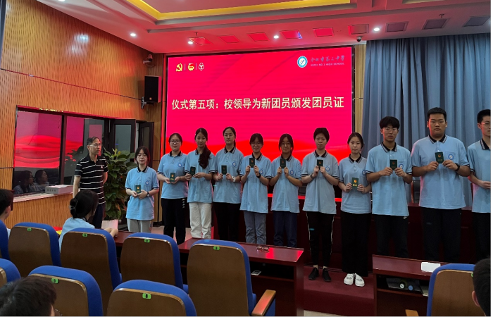 随后,校领导为新团员授予团员证,入团介绍人代表宣读了《团章》中有关团员义务和权利的条款。新团员代表胡宗旺发言,表达了步入成长新阶段的喜悦以及坚定不移跟党走、努力做一名优秀共青团员的决心。