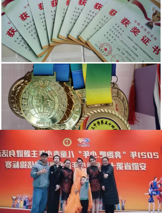 在校期间,2021-2022年全国啦啦操联赛获得双人爵士甲组第一名,集体街舞第一名;2021年安徽省第十七届青少年体育舞蹈锦标赛斩获七项冠军;第九届中国啦啦操公开赛获得双人第八的成绩;2022年全国啦啦操锦标赛获得多个奖项;安徽省第十八届青少年体育舞蹈锦标赛获得多项冠军。