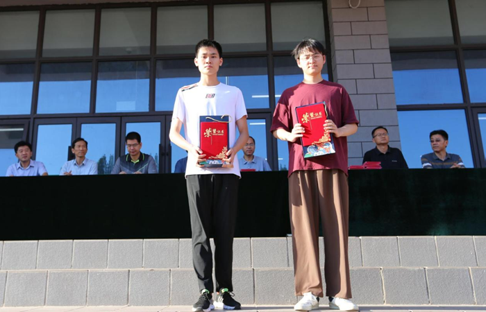 陈卓副校长表彰了2023届十佳优秀毕业生,为优秀毕业生代表颁发奖状和礼品,并号召同学们向学长学姐学习,筑梦杨帆,砥砺前行。