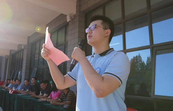 学生代表高三(11)班吴玮明发言,他表示“十年磨一剑,六月显锋芒”,呼吁同学们要不负青春,奋勇拼搏,共铸辉煌!