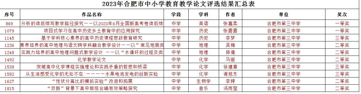 在近期公布的2023年合肥市中小学教育教学论文评选结果中,点点手机版下载官网app共有10位老师的论文获奖,其中一等奖2篇,二等奖5篇,三等奖3篇。