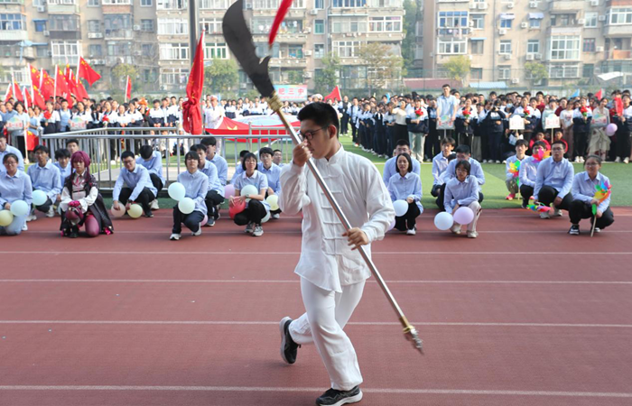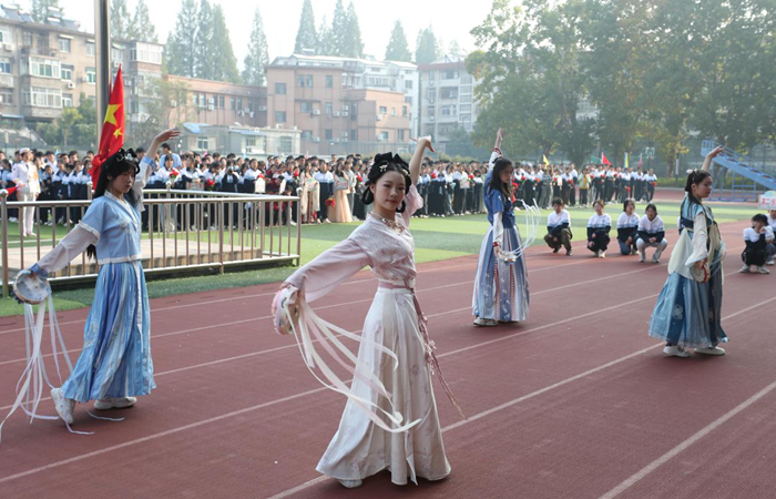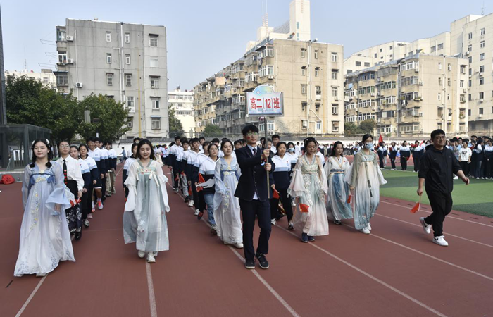 伴随着运动员进行曲的奏响,热情洋溢的会旗队、活力四射的鲜花、彩球、彩旗队,朝气蓬勃的各班方队依次走过主席台。他们踏着欢快而坚定的步伐,带来各有特色的班级表演,现场气氛激昂热烈,掌声连连。