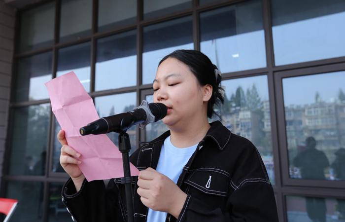刘星老师作为裁判员代表进行宣誓,她表示全体裁判员一定会做到严肃认真,公正准确,团结协作,坚守岗位,全心全意为赛事护航。
