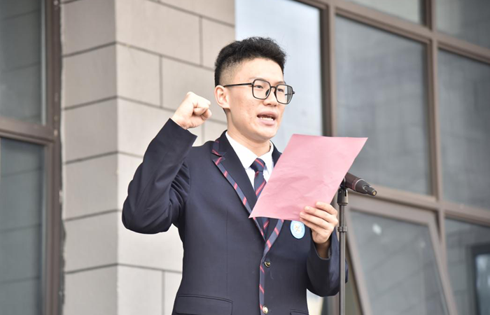 学生代表胡安轩正宣誓:全体同学在运动会期间会严格遵守比赛规则,服从裁判决定,友谊第一,比赛第二,赛出风格,赛出水平,弘扬体育精神,争创校运佳绩。