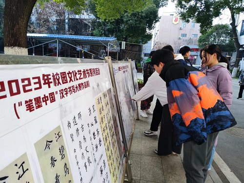一幅幅精美的书法作品将师生们带入艺术的海洋,他们停步驻足,认真欣赏,细心品味,对同学们的作品给予了高度评价。