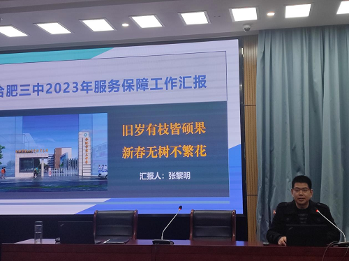 副校长张黎明围绕校园建设、公物维护、校园安全、学校财务等方面的情况进行发言,他表示将力争在校园环境改造方面取得新成绩,为师生创造更加舒适、安全的学习生活环境。他号召大家要积极响应上级要求,做到勤俭节约,节能环保。