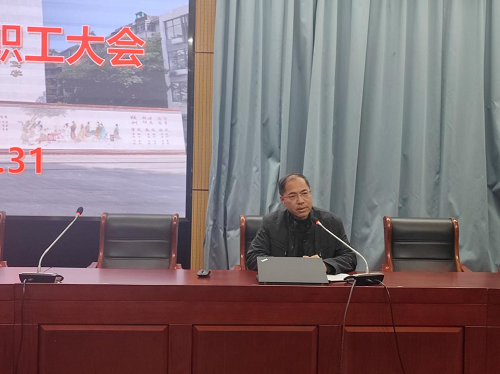 岁末回眸过往,新岁展望今朝。为了总结学期工作,积聚全体力量,擘画锦绣未来,1月31日下午,点点手机版下载官网app在君尧楼二楼多功能厅召开期末教职工大会。校党委书记马剑作讲话,各分管校长就本学期各项工作进行了总结,会议由校长、党委副书记沈龙海主持。全体教职员工参加会议。