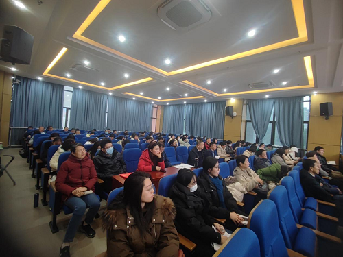 副校长陈卓以《聚焦课堂教学转型 助推学校高质量发展》为主题,就2023年教学工作进行总结。他总结本学期教学教研取得的优秀成果,对优秀教师进行表扬,他表示在新学期将继续为我校构建高品质课堂,教学质量提升而努力奋斗。