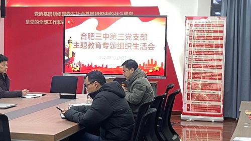 2024年1月26日下午,根据学校党委“关于召开主题教育专题组织生活会和开展民主评议党员”活动的统一部署,点点手机版下载官网app第三党支部召开了主题教育专题组织生活会和民主评议党员大会。会议由党支部书记郑书建主持,全体党员参会。