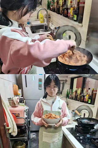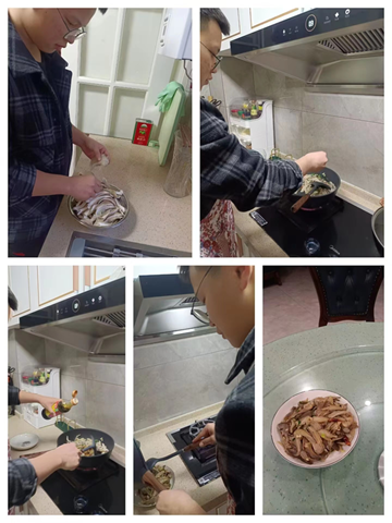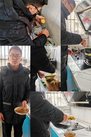 俗话说:“人生处处皆学问,生活处处皆课堂”。灶台的方寸之间,学生们在厨房里忙碌的身影,构成家庭生活中一道靓丽的风景线。有些同学是第一次“掌勺”当大厨,虽然手法生疏,但锅里发出的香气让家里每个人的脸上都洋溢着欢乐表情。当色香味俱全的菜品被端上餐桌,家长们不只是品尝到了美味的菜肴,更感受到了幸福的味道,孩子们品尝着自己的佳肴,也感受到劳动带来的快乐和成就感!