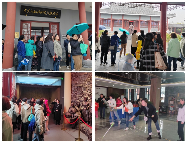 在进行团建活动之前,大家集中到长丰县北乡支部纪念馆参观学习,聆听革命先辈的先进事迹。团建活动在长丰县五七干校教育基地举行,大家参加了投壶、丢沙包、八字集体跳绳趣味项目。大家热情投入,展现了积极向上的精神风貌。整个活动现场欢声笑语不断,老师们在和谐融洽的氛围中既锻炼了身体素质,又放松了心情。最后,大家还到长丰县草莓基地进行了实地采摘体验活动。