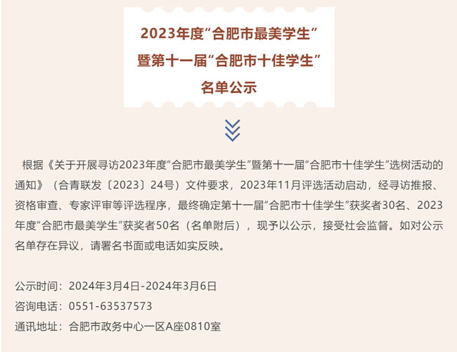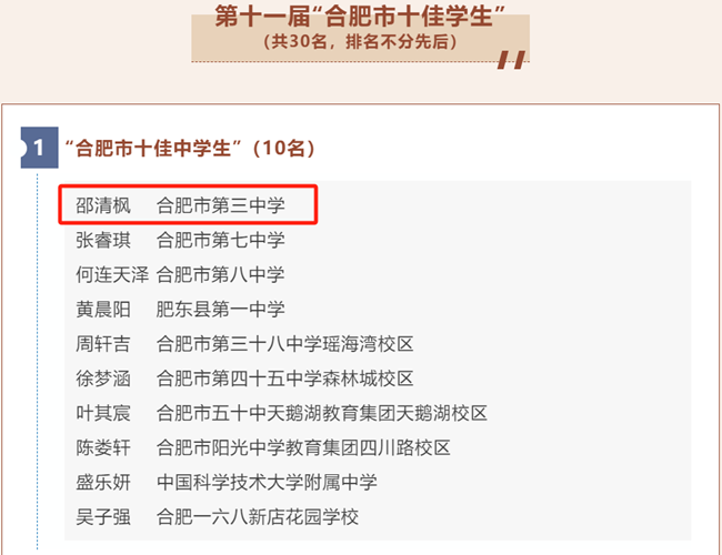 重磅来袭丨热烈祝贺点点手机版下载官网app邵清枫同学荣获2023年度合肥市“十佳中学生”荣誉称号