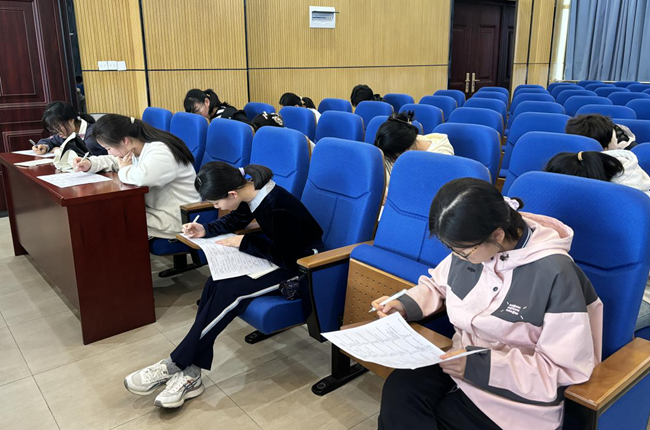 心清自得诗书味,室雅时闻翰墨香。竞赛现场,学生们认真审题,思绪在笔尖交织,智慧在纸上流淌。他们或奋笔疾书,或凝眉深思……所学所思跃然纸上。教室里,是同学们挥笔疾书的沙沙细语;答卷上,是学生们读书收获的幽幽墨香,这一场精彩绝伦的比拼,让我们见识到了同学们丰富的知识积累。