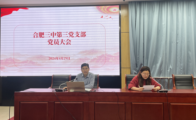会议第一项,第三党支部宣传委员江芸同志传达学习了中央党的建设工作领导小组关于党纪学习教育会议精神,强调全体同志要提高政治站位,深刻领会党纪学习教育的重大意义,把开展党纪学习教育同落实党中央重大决策部署和完成本单位重点工作紧密联系起来,使党纪学习教育每项措施都成为促进学校工作的有效举措。
