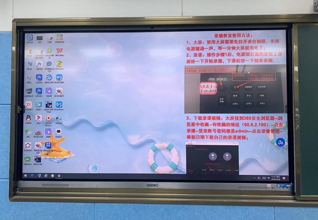 本次运维全面检查了校园内各个电子大屏,如室外大屏、操场大屏、校园查询机、日程播放机等设备,检查录播教室的录播系统的同时,运维人员还把把录播教程放到大屏桌面上,方便老师使用录课手段教学.检查过程中操场二楼大屏远程控制失败,联系维修师傅判断可能是条屏控制卡有问题,预约时间进行维修。