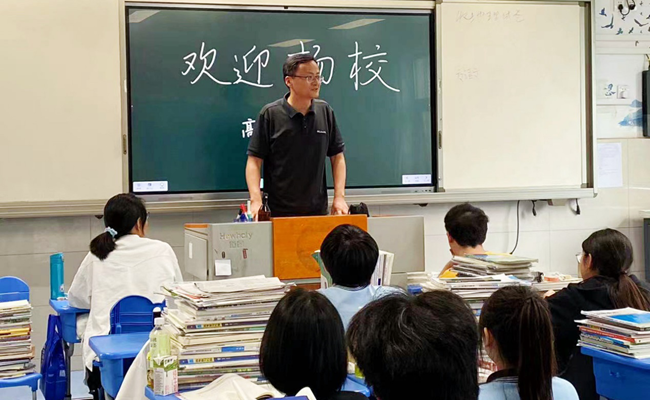 班会课上,同学们以热烈的掌声欢迎校长的到来,并认真聆听校长的殷切嘱托。