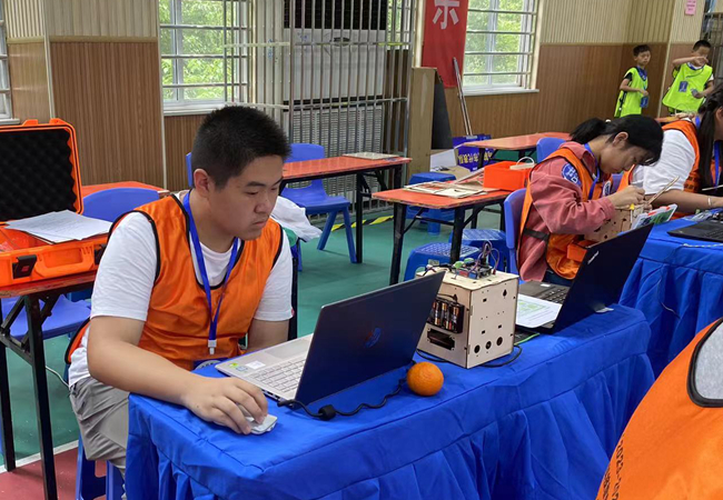 6月2日上午8点,在简短而隆重的开幕式后,比赛正式开始,开源硬件应用设计挑战赛现场竞争十分激烈,各个队伍互不相让,点点手机版下载官网app“正谊机器人队”张韬、孙博文争分夺秒,激烈鏖战,最终在比赛进行到第五十分钟时,第一个完成机器搭建测试提交,取得了满分100分的优异成绩,以领先第二名45分的绝对优势完胜比赛。