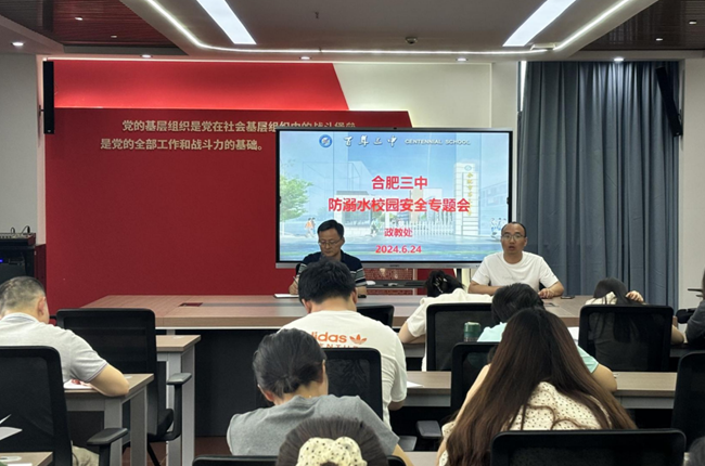 政教处组织举行防溺水校园安全专题会,全体班主任参会,杨庆吉副校长结合学校情况和上级主管部门关于做好防溺水工作的任务要求,对学校防溺水工作进行了部署,要求各班通过开展主题班会、学生家长群、微信公众号等及时开展防溺水安全教育,加大宣传力度,提高学生安全防范意识。
