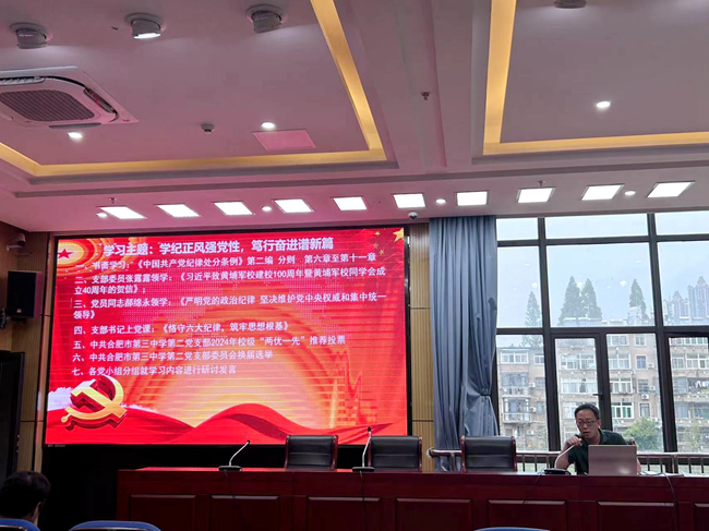 随后党支部进行了2024年校级“两优一先”推荐投票,并按照校党委的指示,严肃、规范、有序组织了中共合肥市第三中学第二党支部委员会换届选举。蒋自路代表新当选的党支部委员会委员作表态性发言,党委委员陈卓对新一届党支部委员会提出要求,要进一步加强学习,以身作则,踏踏实实地工作,全力以赴地抓好支部工作,积极引导每一个党员始终保持和展示共产党员的先进性,充分发挥党组织的战斗堡垒作用。
