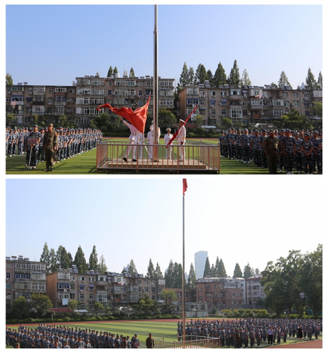 随着国旗护卫队昂首阔步地进场,高一新生军训开营仪式拉开序幕。国歌响起每个人的心中都涌动着对祖国深深的热爱与祝福。这一刻,仿佛能听见历史的回响,感受到作为新时代青年的责任与担当。