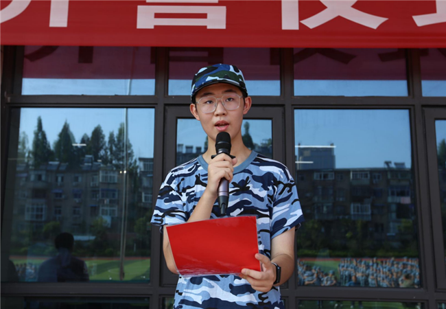 王泽临同学代表高一新生发言,他表示军训是磨砺意志的练兵场,是增加人生阅历的平台,全体高一新生会珍惜军训的锻炼机会,踏实训练,严明纪律,坚决服从命令,以饱满的热情和坚定的信念,迎接未来的各种挑战!