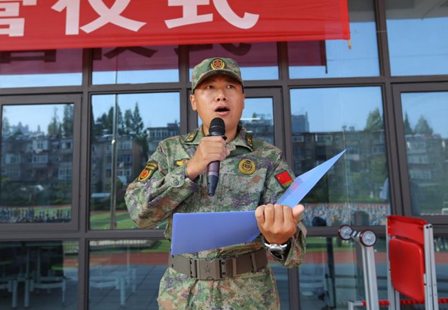 最后,沈龙海校长作动员讲话,他首先向所有的新同学表示热烈的欢迎,向参加军训的全体教官及老师表示亲切的问候与感谢。他强调了军训对中学生成长发展的重要性,希望全体同学能够认真领会军训的目的和意义,以高标准、高质量完成训练任务;同时在军训过程中要遵守纪律,注意安全。