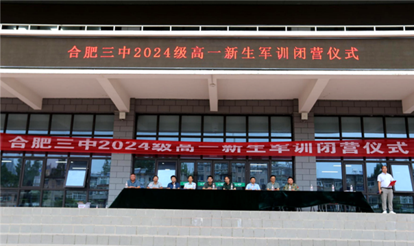 校党委书记马剑、校长沈龙海、逍遥津街道武装部部长陶培良、副校长陈卓、杨庆吉、张黎明、各中层领导、全体教官、各班班主任及全体高一新生齐聚一堂,共同见证了这场凝聚汗水与欢笑,展现青春风采与坚韧不拔精神的军训闭营仪式。仪式由束传海老师主持。