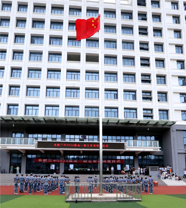 “国旗队出列!齐步走!”伴随着教官响亮的口号,国旗队整齐划一,昂首阔步地向主席台前进, 国歌声响,红旗飘扬,三中学子们气宇轩昂,意气风发。