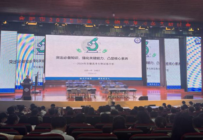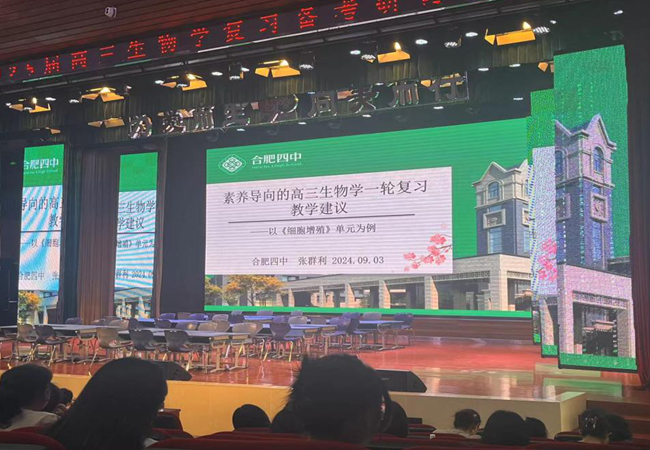 本次复习研讨会由合肥市生物教研员雕玲主任主持,会议共分三个环节:一是合肥一中孙晓方老师评析2024年安徽生物卷的突出特点并总结复习备考的宝贵启示;二是合肥四中于会娟老师就一轮复习课上示范展示课;三是合肥四中生物组教研主任张群利老师介绍展示课的设计思路和打磨过程,并做一轮复习教学建议讲座。