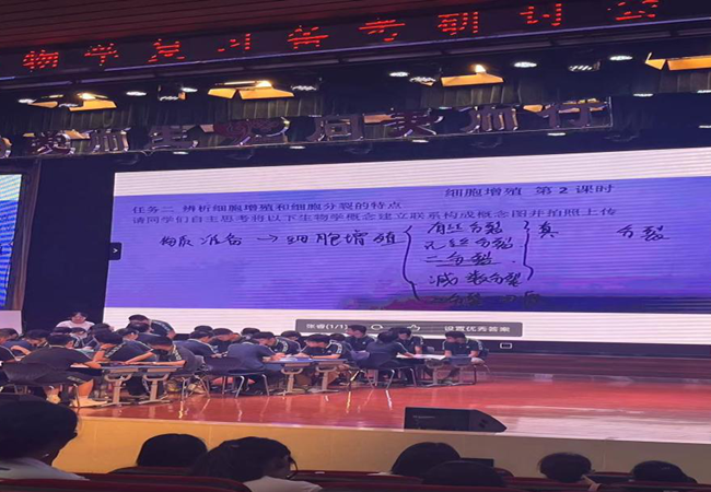 针对很多老师存在“高三一轮复习课怎么上、与新授课有什么区别”的困惑,合肥四中于会娟老师展示了一节一轮复习课,授课的内容为《细胞增殖(第2课时)》。于老师以大单元教学和教学评一体化为理念,打散课本知识,围绕“遗传物质如何分配”这一核心问题,重新安排本节复习课教学内容,设计了两个任务共3个活动,熟练运用智慧课堂开展教学和与学生的互动活动。