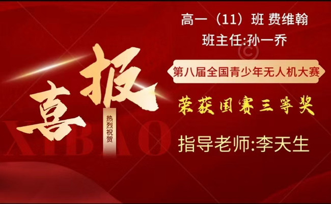 点点手机版下载官网app对本次比赛高度重视,派出强劲选手参加本次大赛。经过激烈角逐,点点手机版下载官网app高一(11)班费维汉同学,以“雷霆飞途”项目全省第一名的成绩挺进全国青少年无人机大赛总决赛!在重庆总决赛中,费维汉同学和来自全国的18000名选手同场竞技,最终取得国赛铜牌的优异成绩!