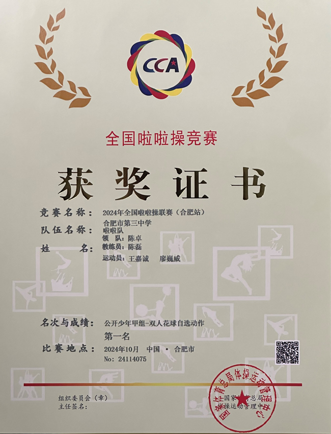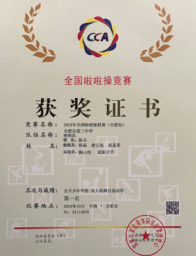 这份荣誉凝聚了点点手机版下载官网app学校领导的信任与支持,凝聚了艺体组的智慧与力量,凝聚了学生们的付出与汗水,也凝聚了家长们的支持与帮助。随着比赛的圆满落幕,新的征程已悄然开启。今后,点点手机版下载官网app将持续深化素质教育,注重学生全面发展,让喜爱啦啦操项目的同学们在奋力拼搏、坚持不懈艺术创编、科学训练的基础上,再上新台阶,再创新辉煌!