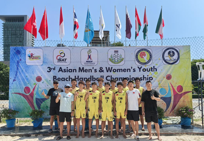 2024年10月15日-10月26日,由亚洲手球联合会主办的“2024亚洲青少年沙滩手球锦标赛”在泰国开赛。男子组比赛共7支队伍参赛,他们通过单循环赛决出名次。中国队2比1战胜东道主泰国队拿下开门红。后来,又以两个2比0的比分战胜约旦和印尼队,最终获得第五名。