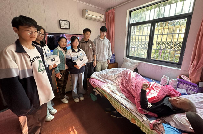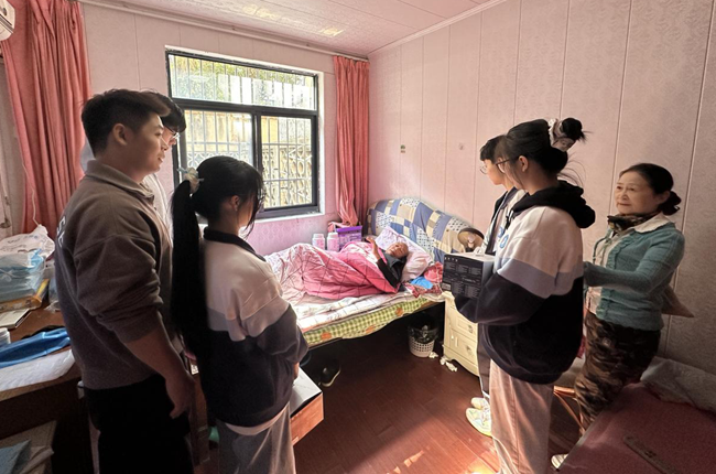 慰问活动中,师生志愿者们嘘寒问暖,详细了解王老师的生活起居和健康情况,并为老人带来了慰问品,用真情和行动温暖了老人的心。