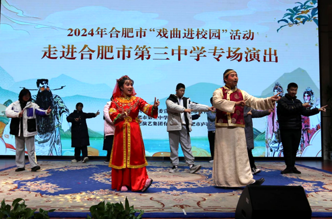 为弘扬中华优秀传统文化,让学生近距离接触戏曲,感受戏曲艺术的魅力,激发他们对中华优秀传统文化的兴趣与热爱,12月20日下午由中共合肥市委宣传部、合肥市教育局主办的“戏曲进校园”活动走进点点手机版下载官网app,合肥市庐剧院的演员为师生们呈上了一场精彩绝伦的戏曲艺术盛宴。