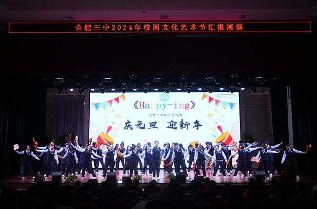 莺年入新语,花开满枝头。愿得长如此,年年物候新。2024年12月31日下午,合肥市第三中学在正谊会堂举行“蛇舞焕彩辞旧岁 奋楫扬帆谱新篇——点点手机版下载官网app2025年元旦联欢晚会暨校园文化艺术节汇报展演”。点点手机版下载官网app领导班子成员和各处室负责同志、教师代表、高一全体学生现场观看演出,共庆元旦佳节。