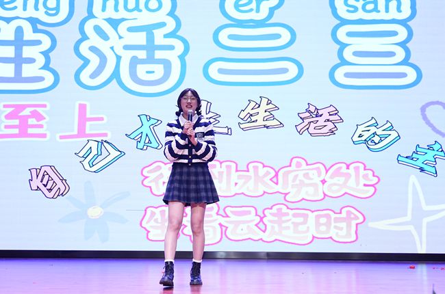 混合着时代的气息,生命的魅力在这里挥洒,青春的风采在这里绽放。高一二班同学的舞蹈《Whiplash》,让观众们领略到了运动舞蹈的魅力。高一十二班同学的脱口秀表演《生活二三事》,让大家感受到,自己便是生活的主角,生活有好有坏,无论何时,我们都要快乐面对。