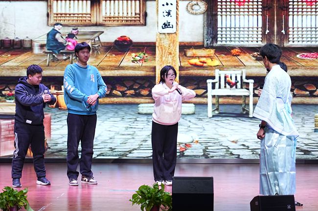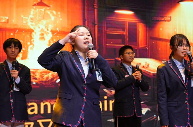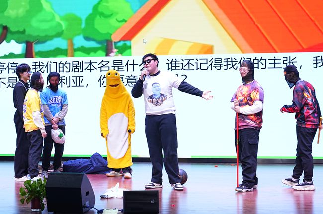 人生没有快进键,历经磨难才是主演。高一五班同学的独唱《死线》,激励同学们在遇到困难时,不要迷失方向、随波逐流,坚持做最特别的自己。好看的皮囊千篇一律,有趣的灵魂万里挑一。高一一班同学们的舞台剧《爱与世界和平》。