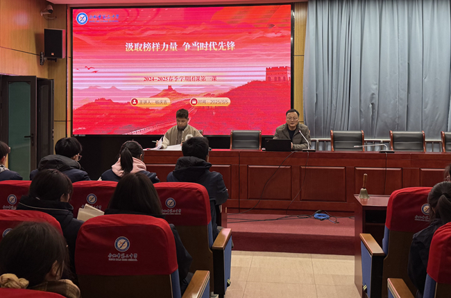 本期团课的第一讲由杨庆吉副校长主讲,主题为《汲取榜样力量 争当时代先锋》。他通过讲述一个个生动感人的榜样故事,深入阐述了榜样的精神内涵和时代价值,鼓励同学们以榜样为引领,坚定理想信念,勇于担当作为,努力学习,练就过硬本领,在实现中华民族伟大复兴的征程中谱写更加绚丽的青春华章。他的精彩授课赢得了同学们的热烈掌声,让同学们深受启发和鼓舞。