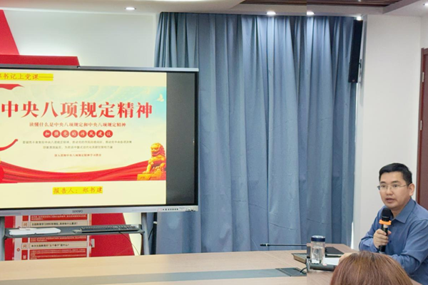 首先,支部委员柴俊带领全体党员认真学习《习近平关于加强党的作风建设摘编》第一章节重要论述,接着对《中共中央政治局贯彻落实中央八项规定实施细则》进行了细致解读,她从改进调查研究、精简会议活动和文件简报、规范出访活动、改进新闻报道、加强督促检查五个方面带领大家进行研讨学习。通过学习,党员们对中央八项规定实施细则有了更为清晰和深刻的理解。