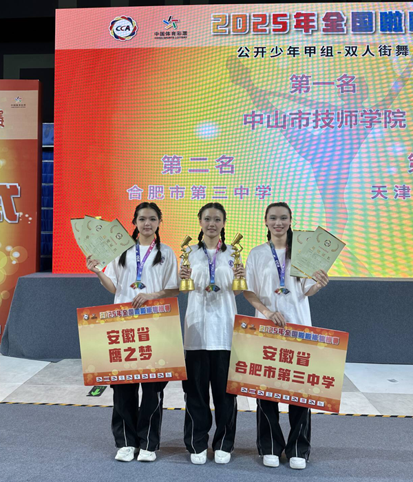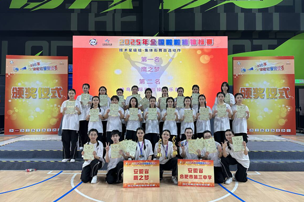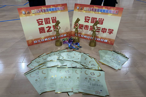在近日落幕的2025年全国啦啦操锦标赛中,合肥市第三中学组建队伍参加了本次比赛,由陈卓副校长担任领队,陈磊、张盖茨担任教练员,他们凭借卓越的表现,闪耀赛场,共斩获三项冠军、一项亚军,成绩斐然,为学校争得了荣誉。