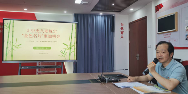 校党委委员陈卓以《让中央八项规定金色名片更加明亮》为题,为全体党员上了一堂深刻的党课。陈卓从新时代制定中央八项规定反对“四风”的原因、新时代落实中央八项规定精神的伟大实践及基本经验、深挖“四风”形成根源等角度,深入阐述了中央八项规定的重要性。他指出,八项规定不仅是党的纪律要求,更是赢得民心的关键举措。同志们要持续深化对八项规定精神的理解,在工作和生活中发挥模范带头作用,让这张金色名片在新时代更加熠熠生辉。