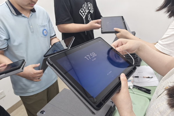 5月19日16:30,平板回收工作严格遵循"单班级单向流动"原则有序推进。各班按时段错峰入场,专岗人员在入口核验平板自检表并实施单一班级闭环管理,通过物理隔离杜绝人员交叉。技术团队对每台设备进行三重检测:首轮外观筛查确认无物理损伤,次轮通电测试充电接口与电池状态,终轮通过专业软件检测屏幕显示、触控灵敏度及系统稳定性。
