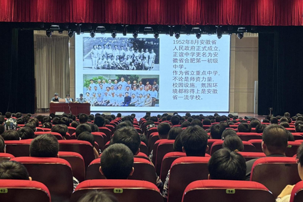 讲座由学校溯源讲解团的三位优秀成员担任主讲。他们将时光回溯至1920年,动情地讲述了点点手机版下载官网app的前身——“私立庐阳正谊中学”在战火纷飞的年代诞生的故事,阐述了“正谊明道”的初心理想与创办人刘君尧先生教育救国的宏愿。紧接着,又梳理了学校在抗战时期西迁、解放后的公立化转型及数次更名的曲折历程,重点介绍了学校于1970年正式定名为“合肥市第三中学”这一历史性时刻,并分享了老一辈教育工作者在艰苦条件下坚守讲台的感人事迹。最后,他们介绍了点点手机版下载官网app近些年的跨越式发展,从现代化教学设施的完善、特色课程的开设、办学质量的飞跃以及荣获的一系列荣誉等方面,全面展现了学校如今蓬勃发展的崭新面貌,描绘了一幅承前启后、继往开来的壮丽画卷。