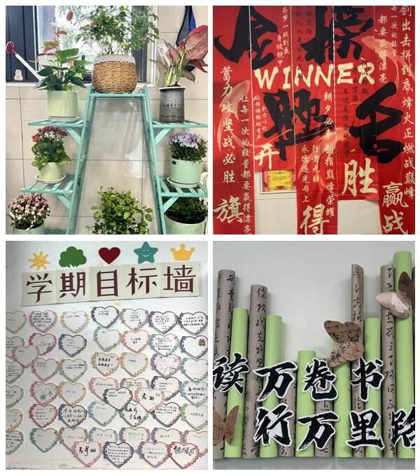 走进各个班级,可谓班班有特色,处处皆风景。有的班级绿意盎然,清新的盆栽植物为教室增添了无限生机与活力;有的班级板报绘声绘色,主题鲜明、设计新颖,既有知识性又不乏艺术感,成为班级文化宣传的重要阵地;有的班级则设立了“目标墙”或“心愿树”,上面写满了同学们对未来的期望与对集体的承诺,激励着大家共同奋进;还有的班级设置了图书角、荣誉栏、风采展示区等,巧妙地将教育性、趣味性与艺术性融为一体,营造出积极向上、温馨和谐的学习生活氛围。