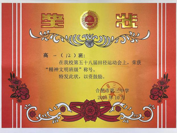这份“精神文明班集体”荣誉,是高一(12)班全体师生共同努力的成果,不仅是对班级文明风貌的肯定,更激励着同学们在未来的学习与生活中,继续以文明为帆、以拼搏为桨,书写更多属于青春的精彩篇章!