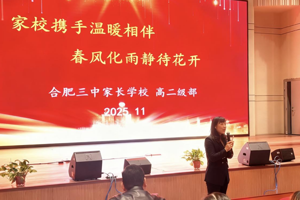 讲座特邀安徽省青少年发展研究会理事、合肥市第二中学副校长胡毅林担任主讲人。胡毅林以亲切的互动开场,迅速拉近了与家长们的距离,营造出轻松而专注的交流氛围。她结合自身教育经验与典型案例,引导家长思考如何在高中阶段更好地支持孩子成长。