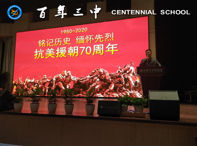 会议第三项,以视频形式播放大型记录片《英雄儿女》中第二集《极限战争》,再一次让学生感受战争惨烈,中国志愿军视死如归,英勇无畏的革命精神。