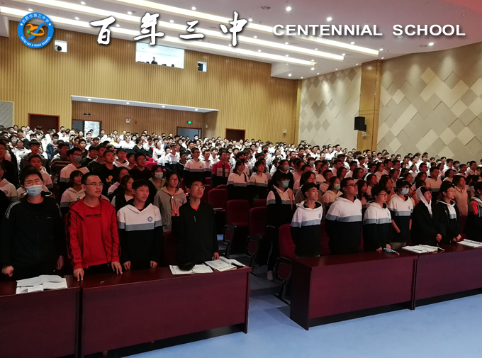 会议第一项,全体学生起立,唱国歌,歌声洪亮,响彻整个会堂。